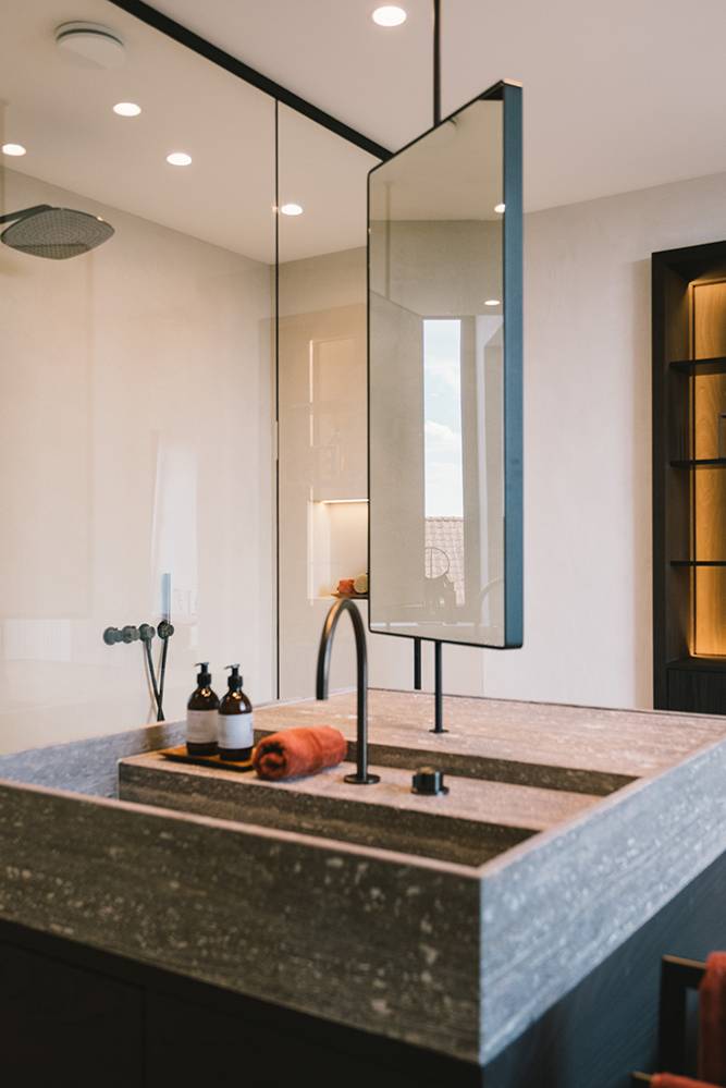 Das nahtlose Bad ist hygienisch und pflegeleicht.