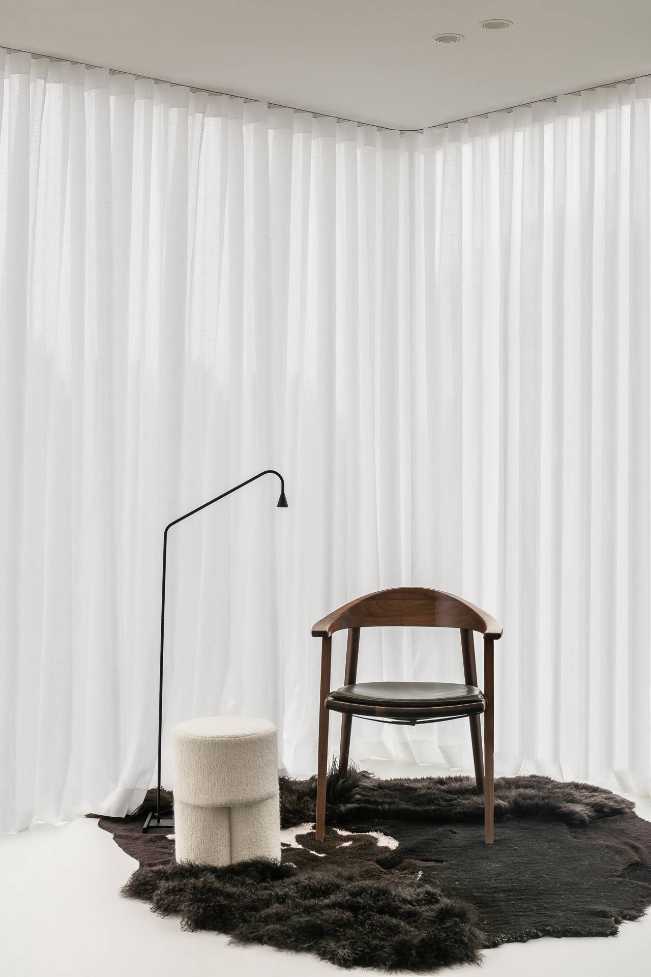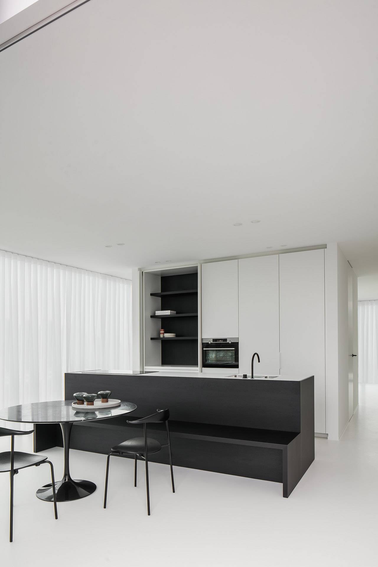 Interior architect Thaïs Niville from studio Ville Design created this timeless yet contemporary interior for her customers who invested in an apartment in Bruges. Warm wood and richly textured curtains and carpets are more than appreciated on the neutral Liquid Mellow.