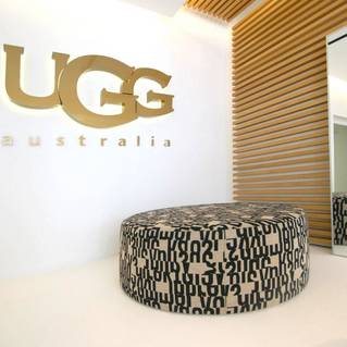 Réalisation du sol coulé Mellow par Liquidfloors dans le Concept Store de Ugg à Hasselt, Limbourg.