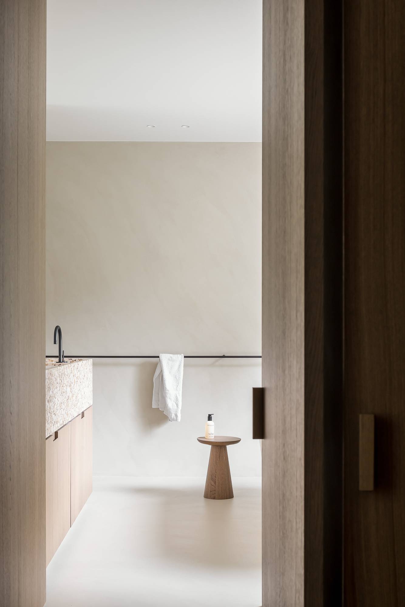La salle de bain, imprégnée d'un sentiment de luxe et de sérénité, est également enrichie par notre Socrete. Les propriétés de résistance à l'eau de ce matériau le rendent non seulement pratique, mais aussi esthétique, pour créer un espace où la tranquillité et la sophistication sont les maîtres mots.