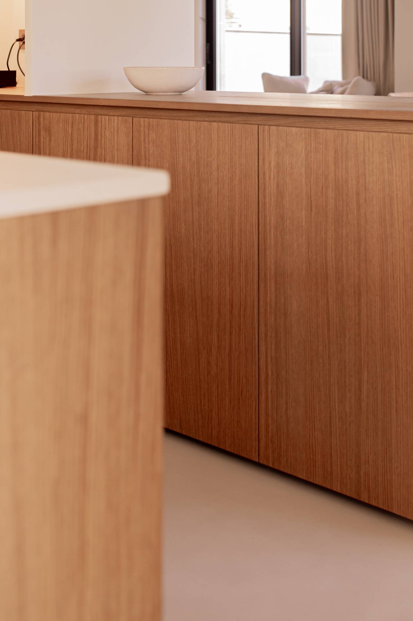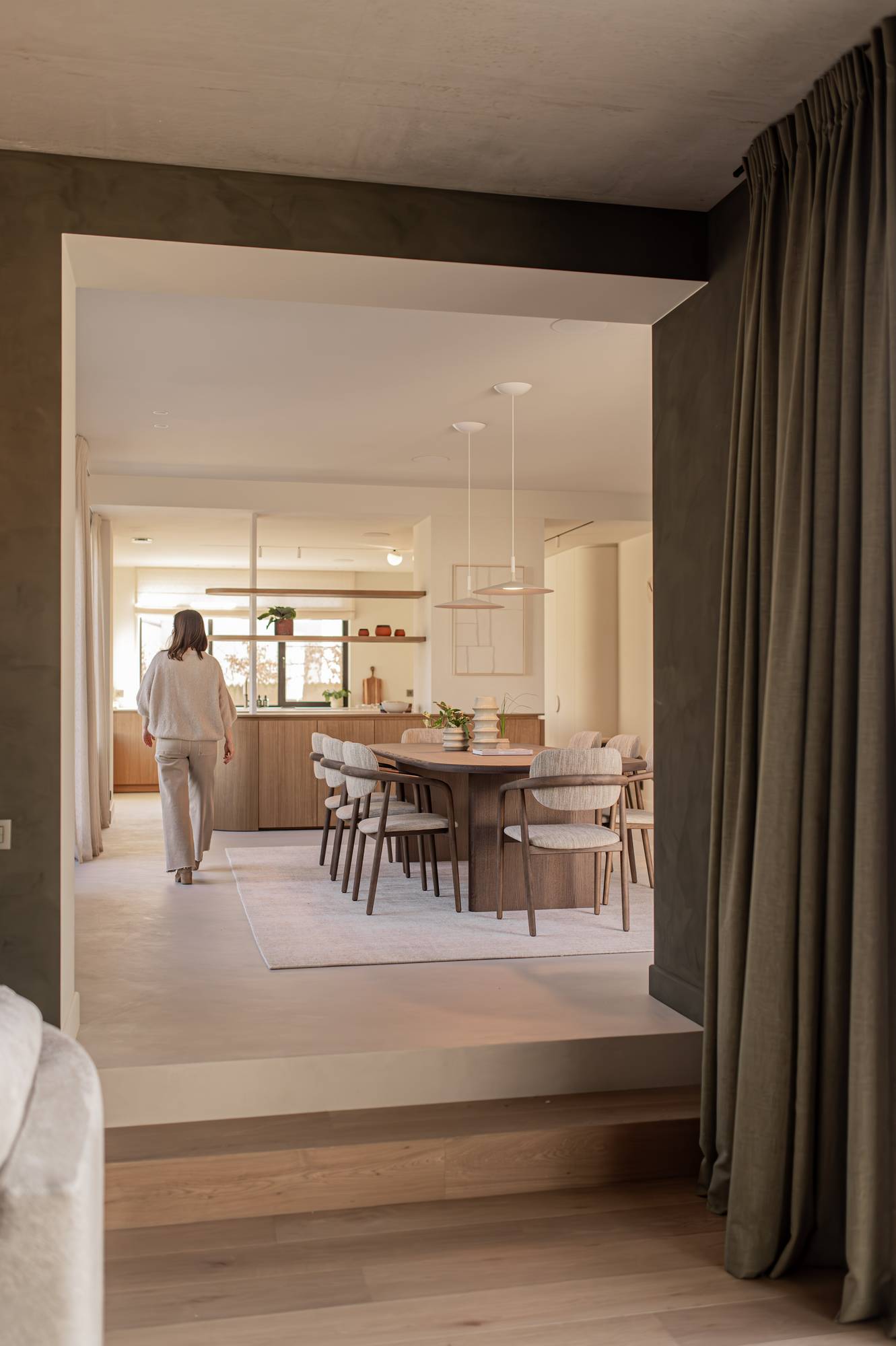 Pour ce projet, Sundae a délibérément choisi Socrete pour son aspect épuré et sa qualité durable. La couleur White Cliffs, un doux équilibre entre le beige et le gris, apporte de la chaleur à l'espace et crée une atmosphère accueillante. Grâce à sa finition sans joints, le sol passe sans effort d'une pièce à l'autre, renforçant la sensation d'ouverture et de lumière.