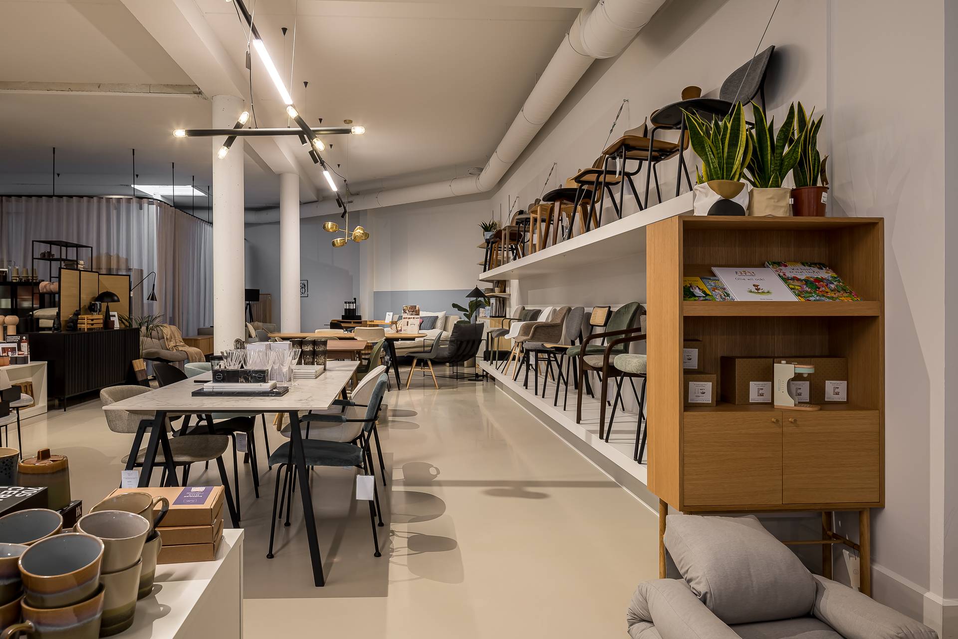 Om de ideale ruimte te creëren om hun assortiment uit te stellen, koos LITT Interior voor een Mellow gietvloer. Het gladde oppervlak van de vloer zorgt voor een naadloze overgang tussen verschillende gebieden van de winkel en geeft de ruimte een gevoel van eenheid en samenhang. Dit helpt om de aandacht te richten op de producten die worden aangeboden.