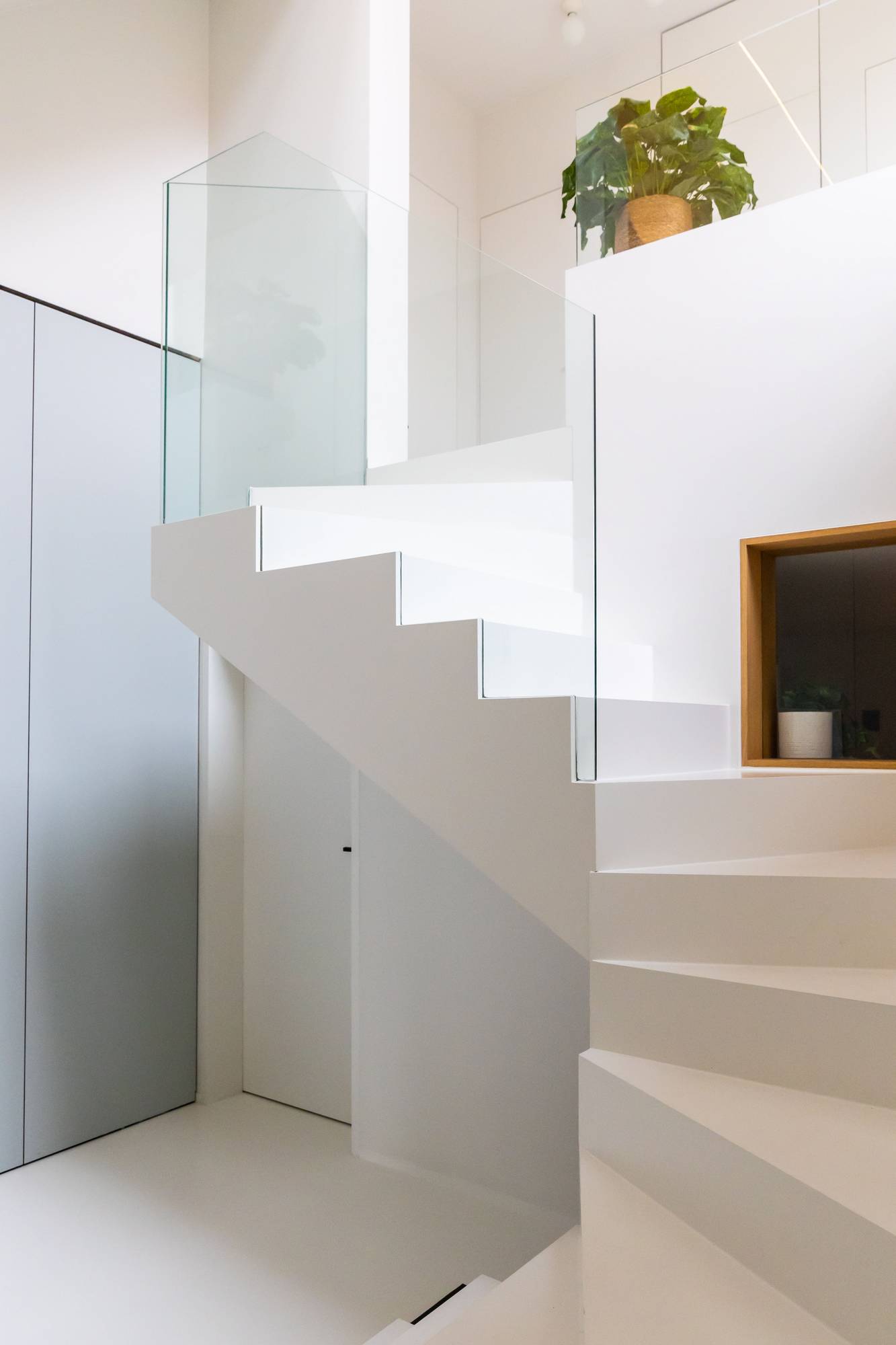 Het ontwerp maakte gebruik van witte vloeren, muren en plafonds om zonlicht naar binnen te weerkaatsen, waardoor een heldere en open sfeer werd gecreëerd. Dit gaf de vrijheid om elke verdieping op maat te ontwerpen en het maximale potentieel van de ruimte te benutten.